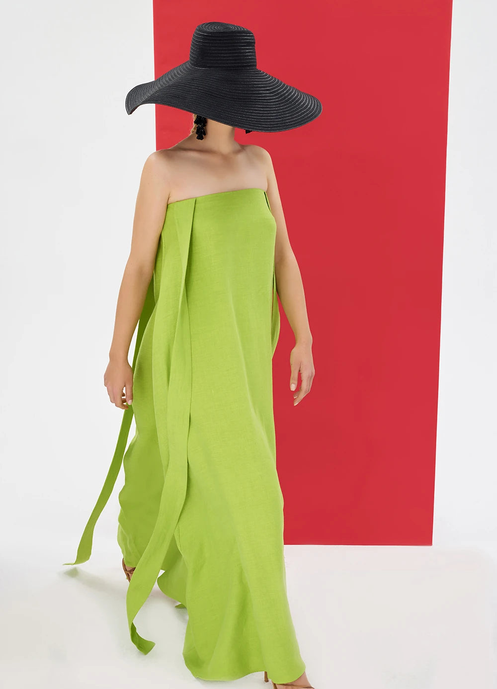 ELIANA, %100 keten straplez elbise, yaz aylarında teninizde yokmuş gibi hafif bir hisle gün boyu ferah bir kullanım sunar.