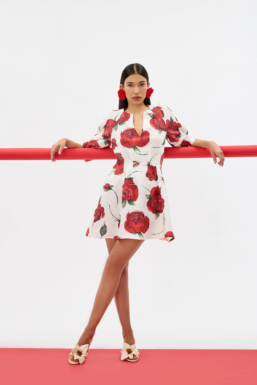 LIORA, %100 doğal keten dokusunu gül desen ile birleştiren mini elbise. Yaz aylarında tasarlanan bu parça, “teninizde yokmuş gibi hafif” hissiyle gün boyu konfor sunar.