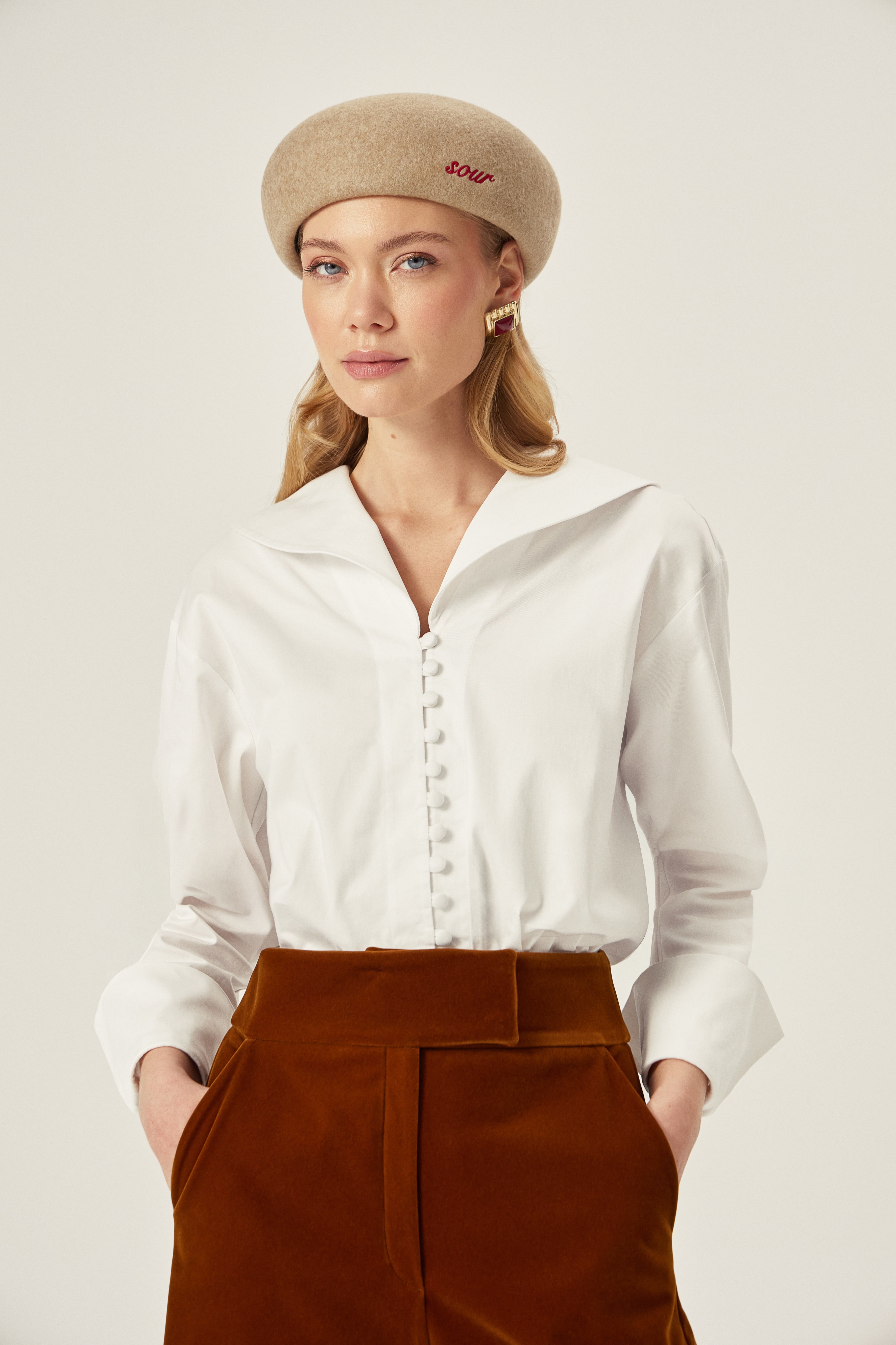 Ferahlığı hissetmek için tasarlanan bu beyaz gömlek; denizci yaka, katlanabilir manşet ve geniş kesim formunu bir araya getirir. %100 pamuk yapısı gün boyu hafiflik sunar. Tok dokulu kumaşıyla iç göstermez.