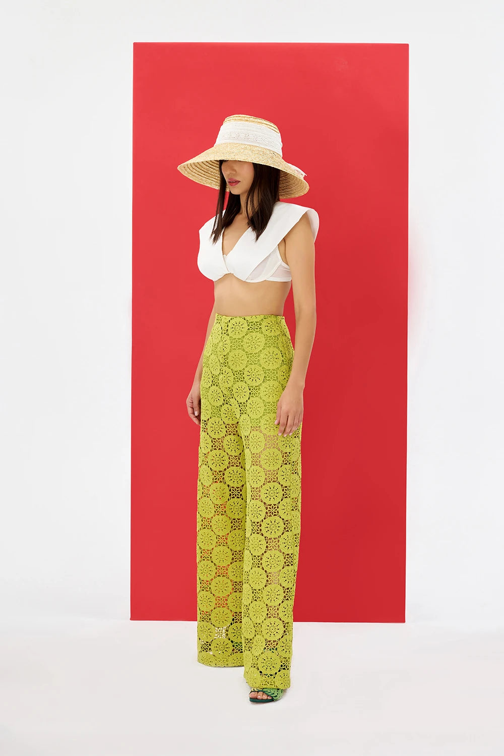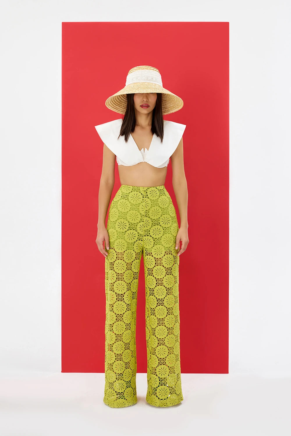 ZEPHYRA krose pantolon, havadar yapısı ve düz kesimiyle gardırobunuza net bir çizgi getirir. İç astarı, gün boyu daha rahat bir kullanım hedefler. Yeşil rengiyle tek parçada güçlü bir görünüm kurar.
