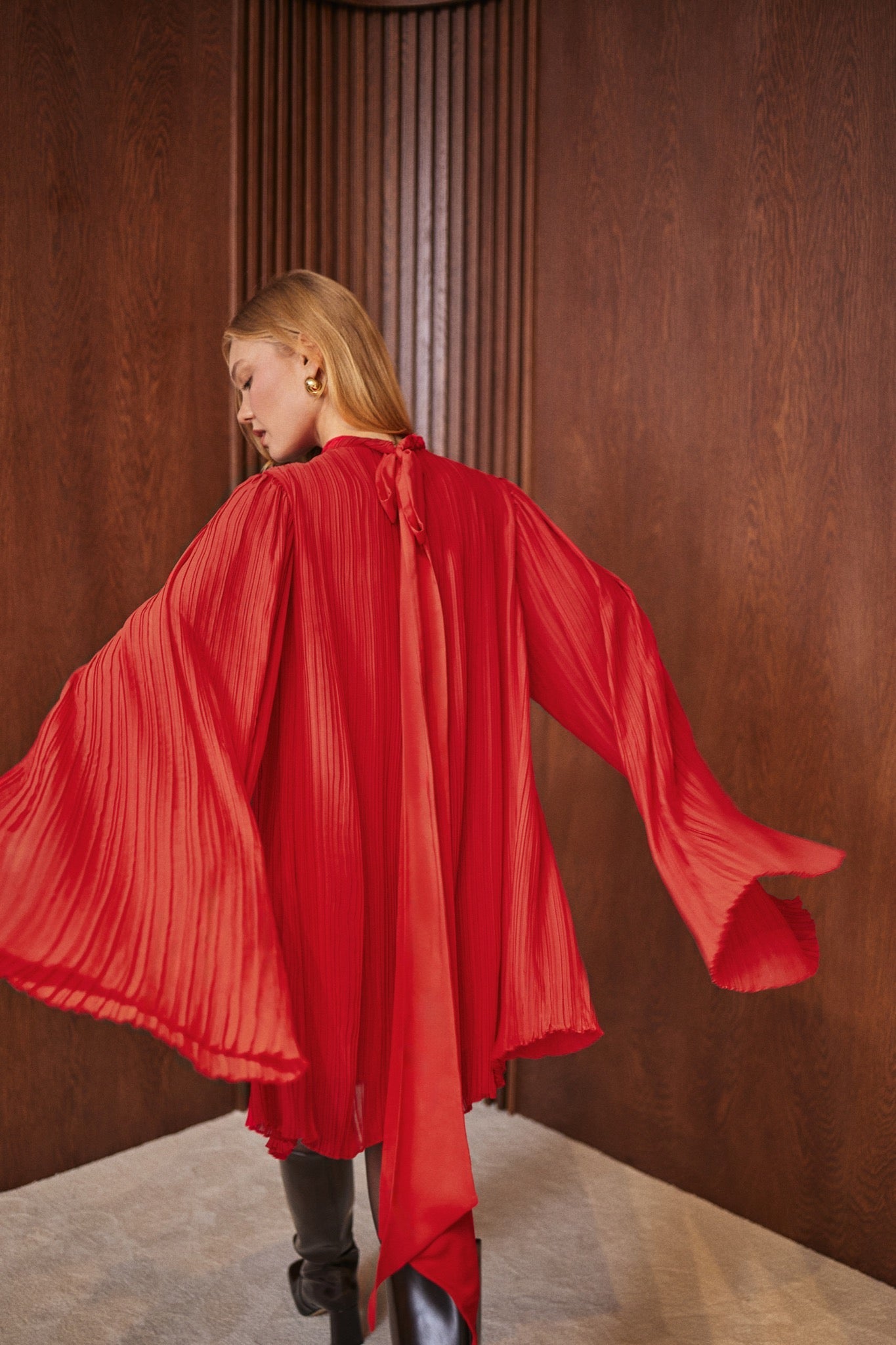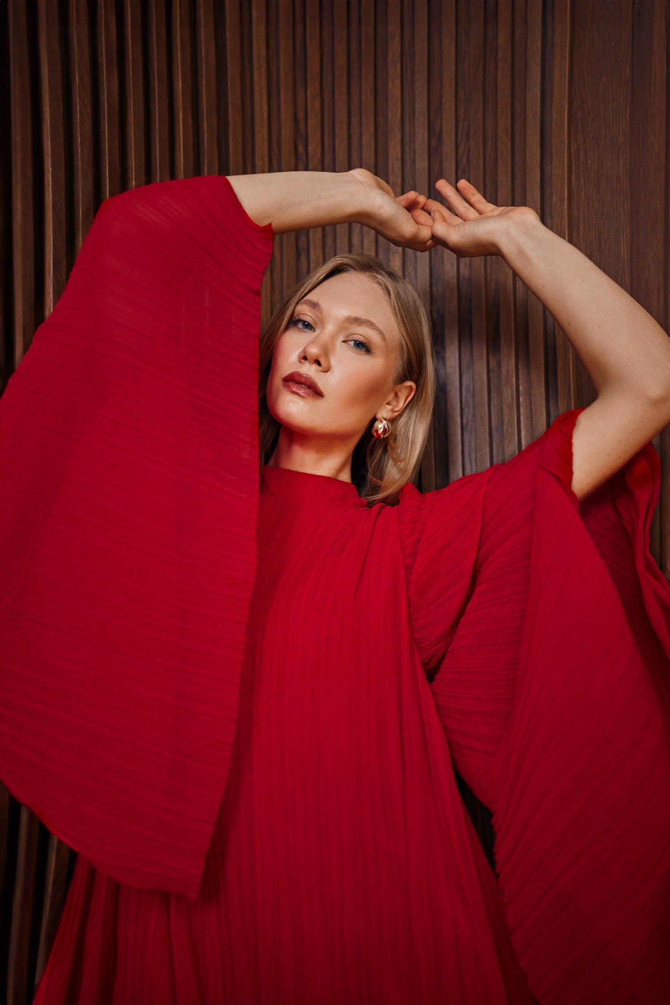 Kırmızı rengiyle dikkat çeken bu parça; günlük planlardan özel anlara kadar tek adımda tamamlanan bir görünüm hedefler. Yaz aylarında, aksesuarlarla yön değiştiren bir elbise arayanlar için ideal.