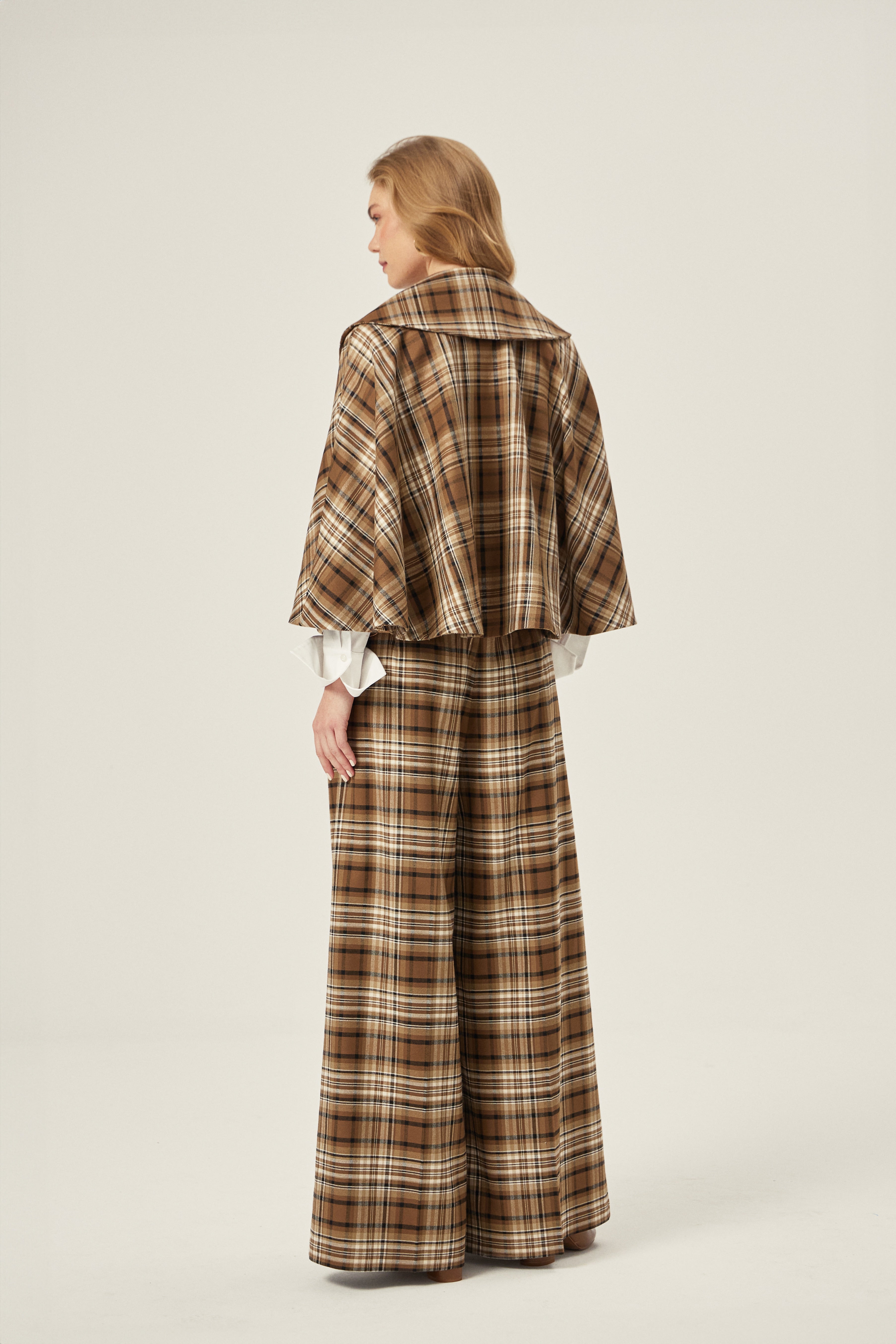 Sour Mélange seçkisinde yer alan bu pantolon, tartan ekose deseni ve önden pile detayıyla net bir siluet sunar. Yüksek bel formu beli toparlar; uzun ve geniş kesim ise gün boyu rahat hareket alanı sağlar.
