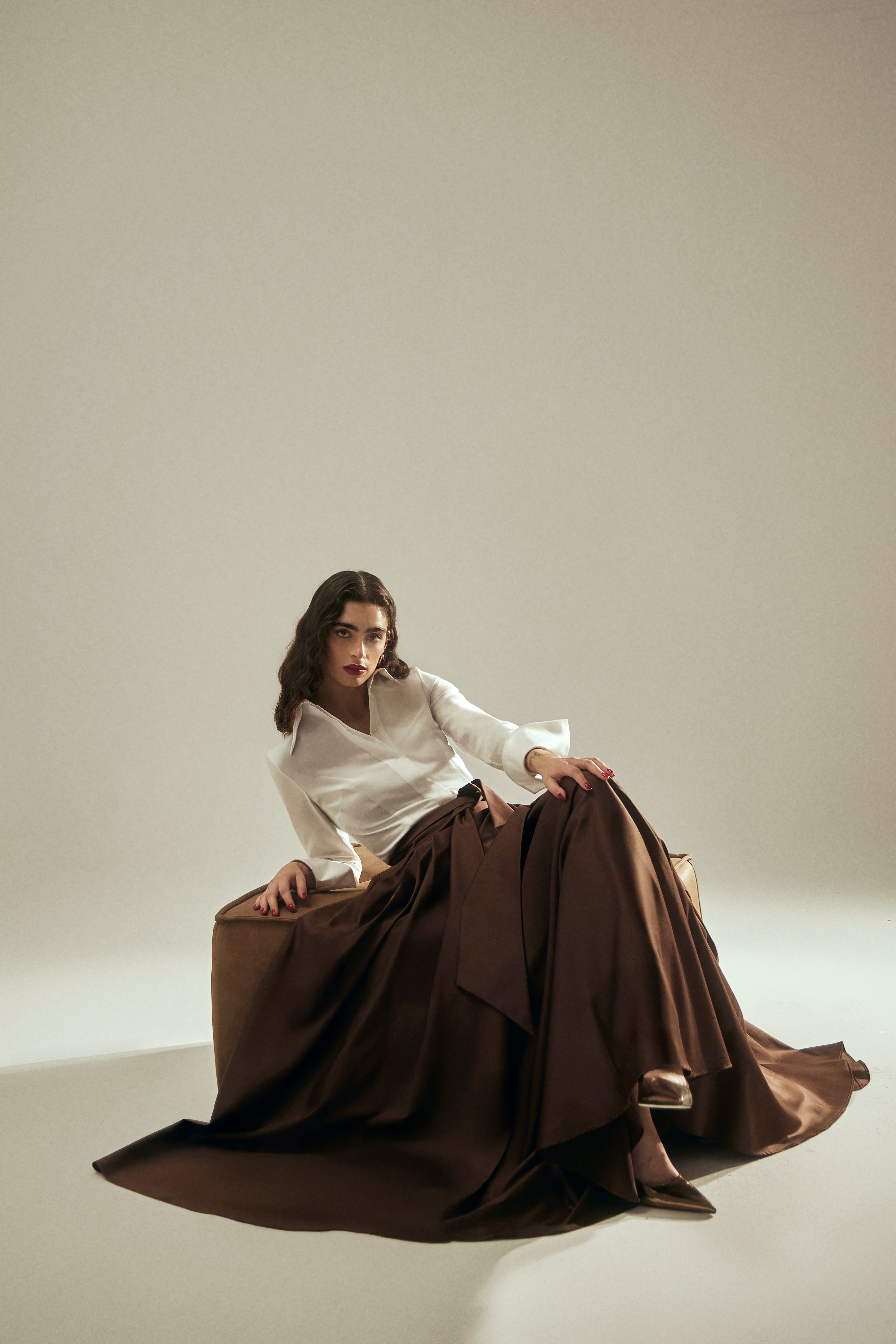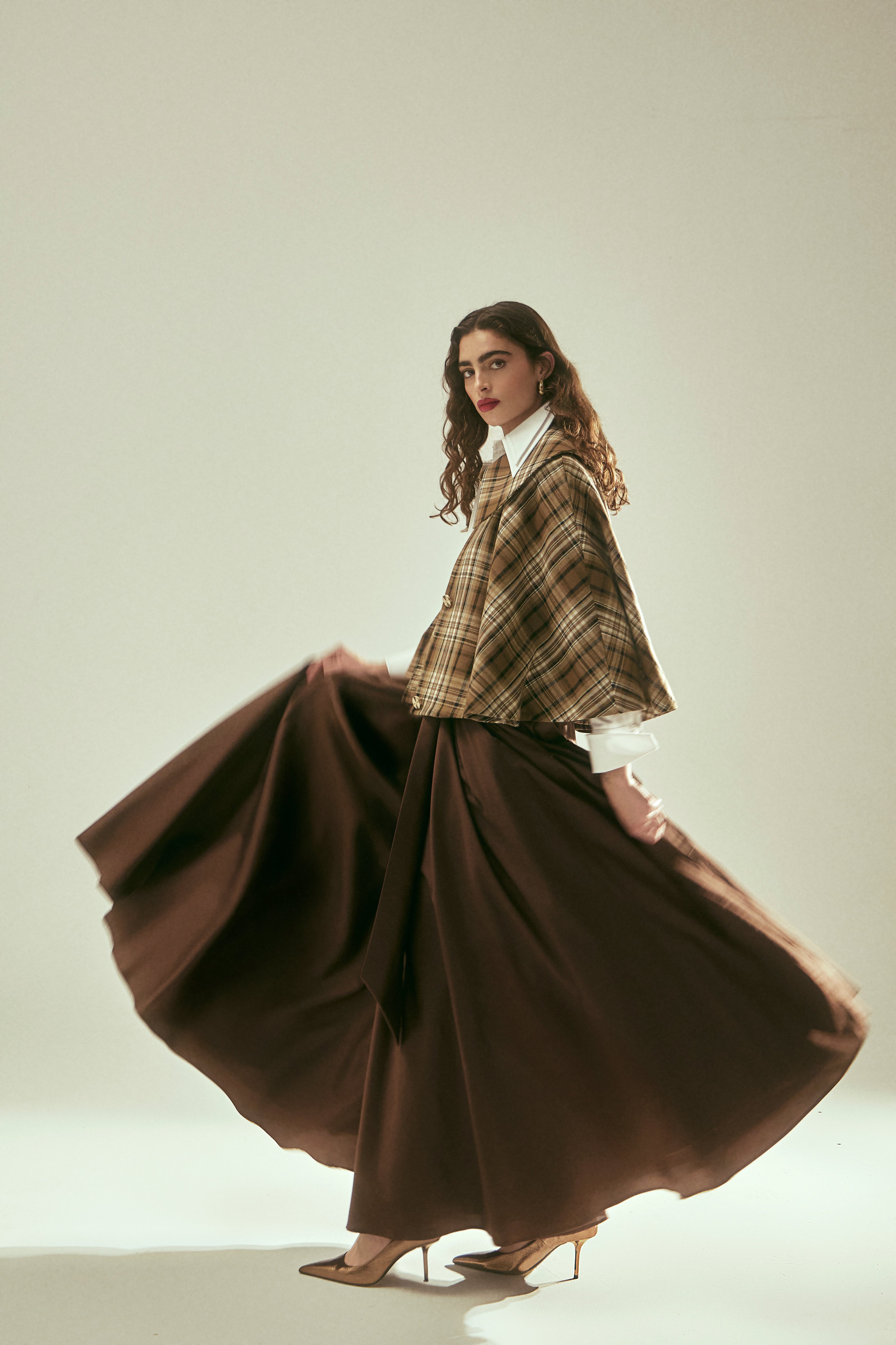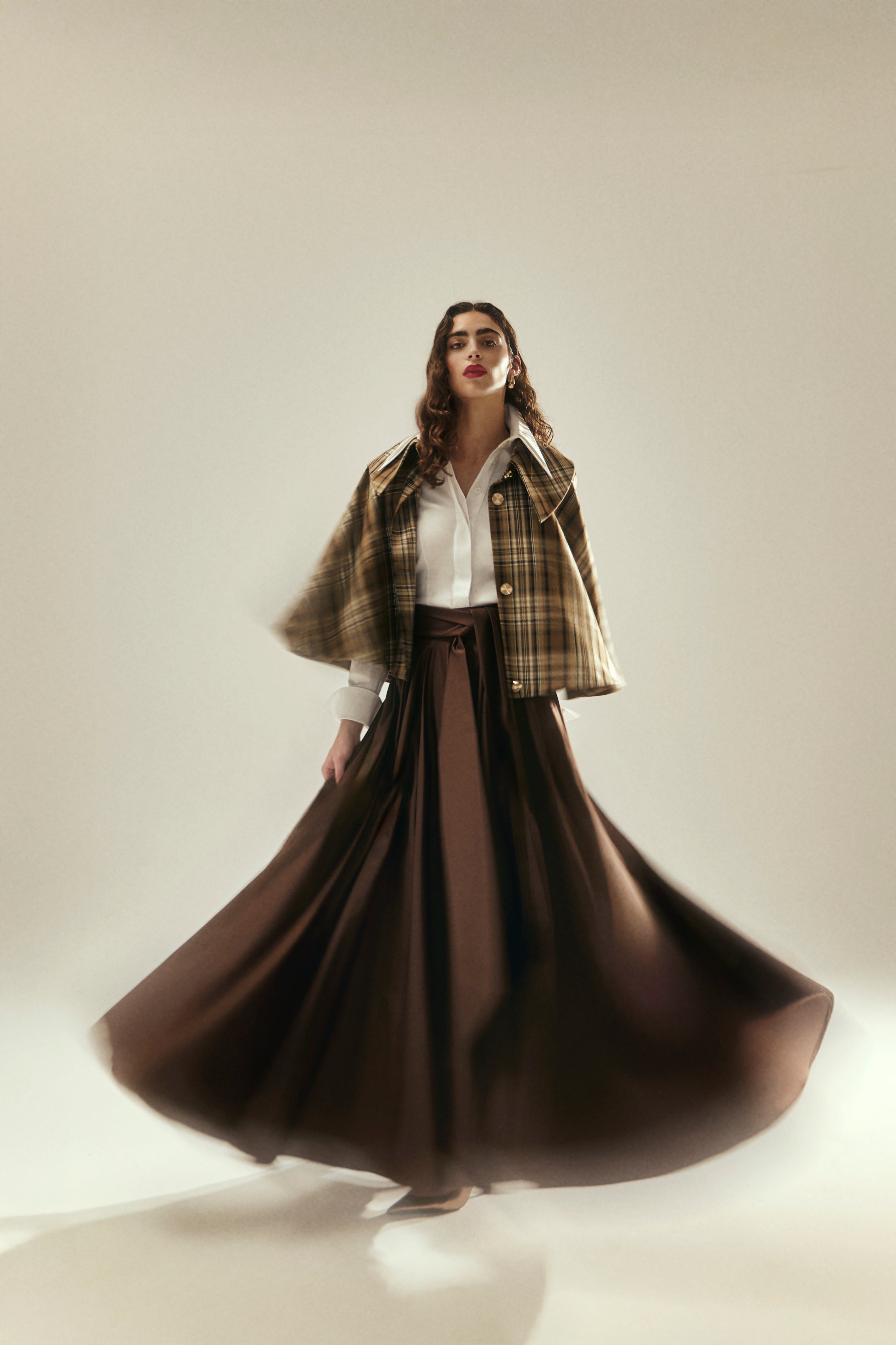 - Shape: Circle skirt, voluminous look.